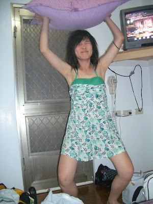 他們沒有換衣服直接穿泳衣外面唯一條浴巾